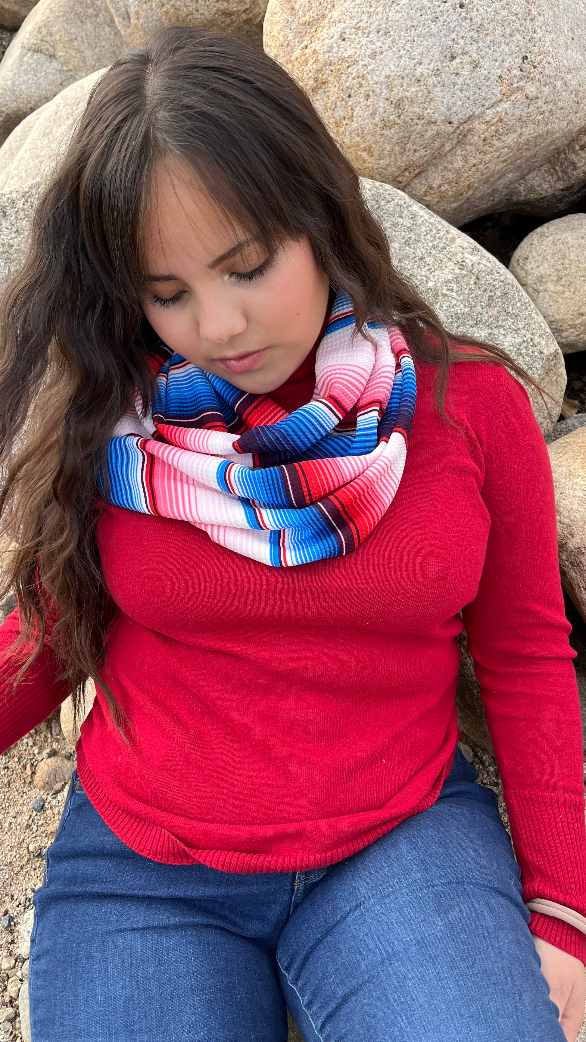 Pink, Blue and Red Sarape Inspired Infinity Scarf